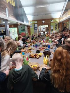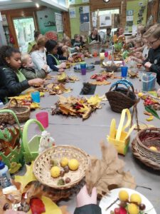 Mooier kan je het niet wensen. Blije jeugd, zonnig weer en een prachtig park vol met kleuren. Alle jeugd uit de omgeving was aanwezig. Met een mandje in de hand kleurige bladeren en vruchten zoeken. Binnen allemaal een herfststuk gemaakt en dankbaar naar huis met tevreden ouders.