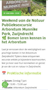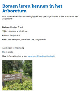 De groene Doe en Ontdekdag is dit jaar op 7 juni en ingelijfd in ‘Weekend van de Natuur’. Meer over weten? – klik dan op een van de afbeeeldingen – je wordt dan doorgelinkt naar de gegevens van IVN Dordrecht. Laat je verrassen door de veelzijdigheid aan prachtige bomen in het Arboretum Munnike Park. Bij een bezoek aan de EXPO is een QR code lezer op je mobieltje wel handig.