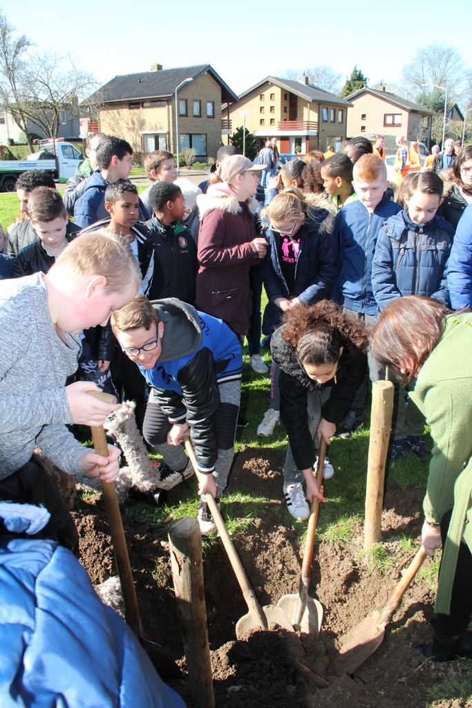 Bomenkoning en Koningin planten de 1e boom met de wethouder