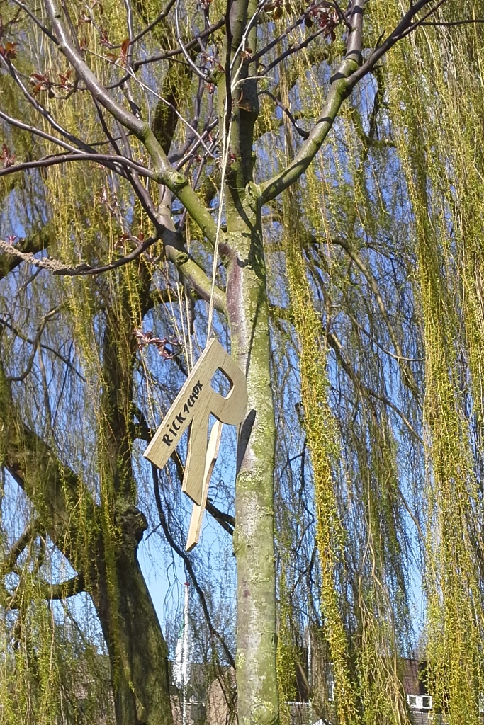 Zelfgemaakt label ophangen